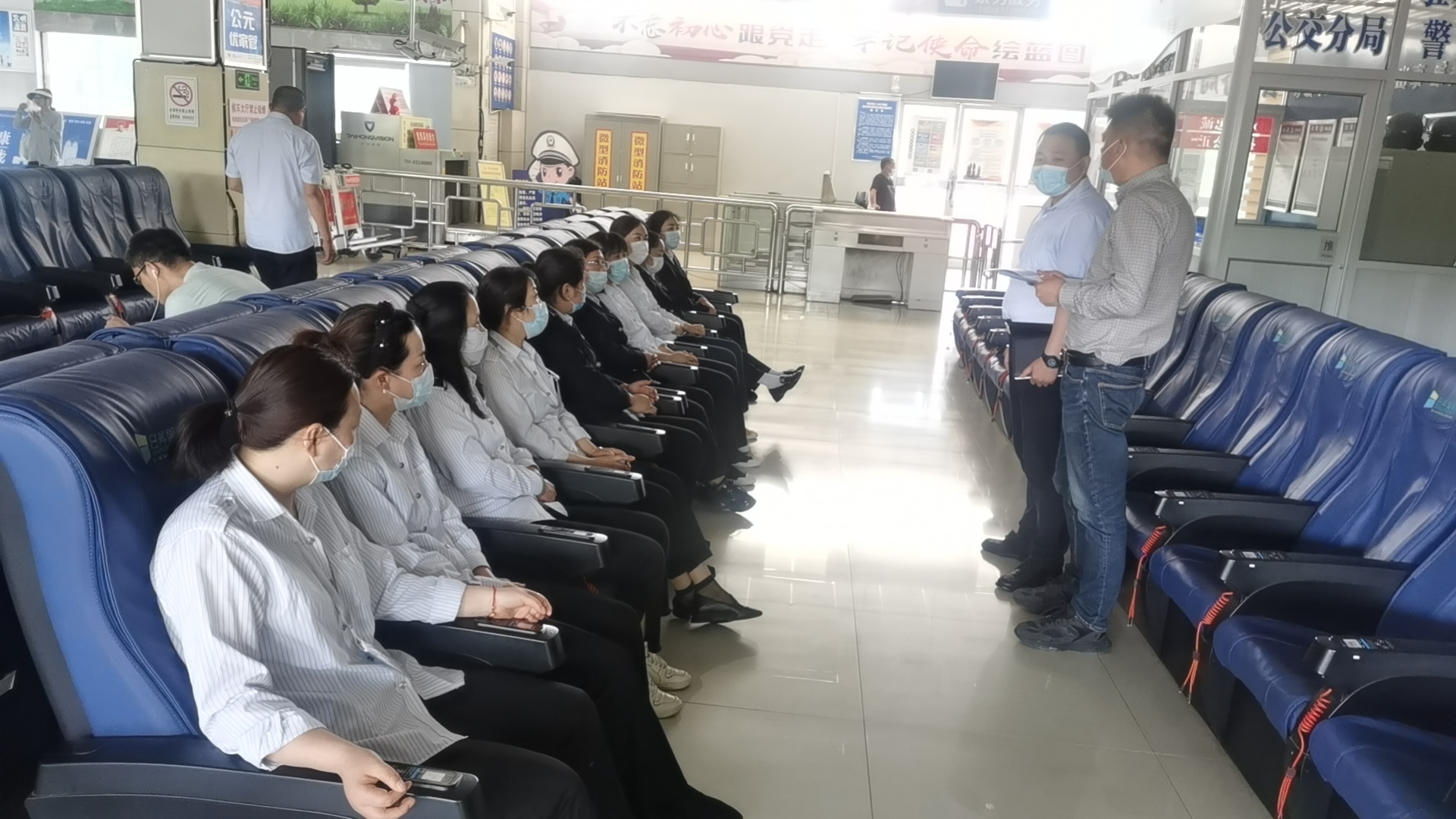 会上,李启军针对做好站务管理工作,对站务员提了要求,加强业务技能学习,提升个人综合素质,做好文明服务;保持站容站貌、车容车貌干净整洁,为广大旅客提供安全、便捷、舒适的出行环境。随后,宋涛针对安全管理工作,对站务人员交待了几点注意事项,强化安全生产意识,认真执行汽车客运站“三不进站、六不出站”管理规定,维护良好的营运秩序;严格落实旅客实名制售票、检票、“三品”检查。