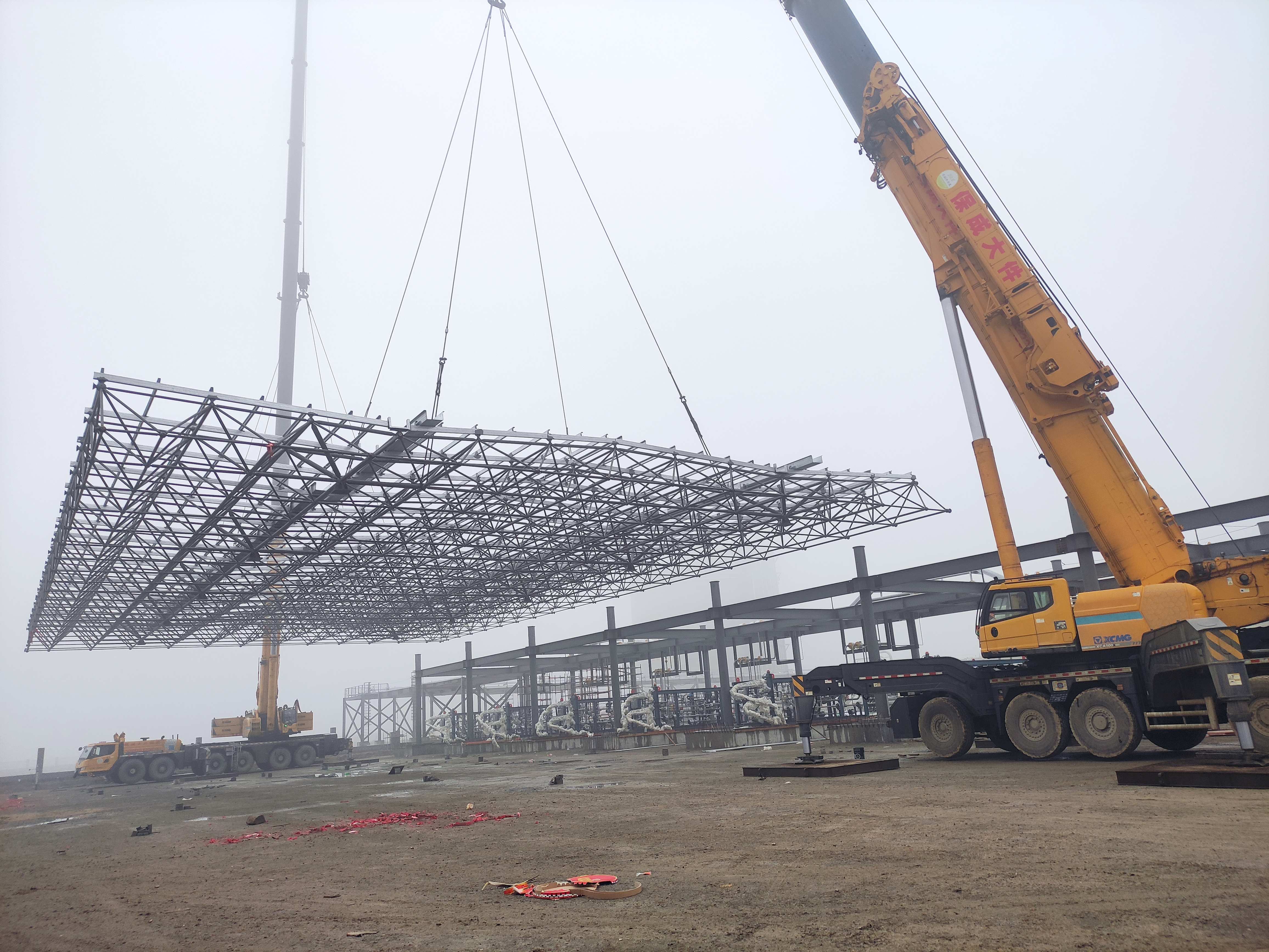 12月30日,物流世界杯app最新版下载,世界杯(中国)LNG储配站槽车装卸区钢结构网架精准落位,槽车装卸区钢结构吊装顺利完成,标志着影响工期关键节点的钢结构施工实现突破。