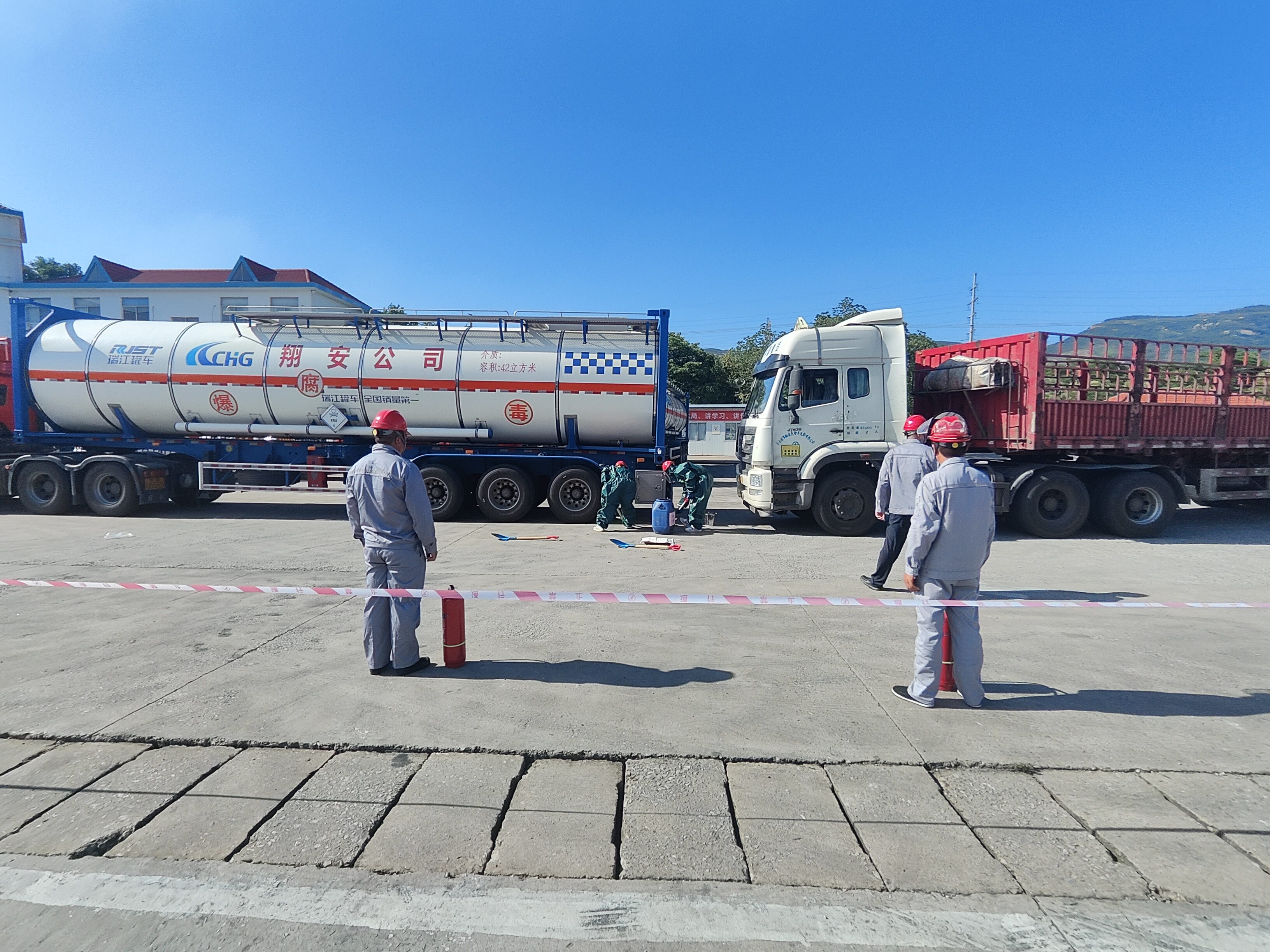 为做好此次现场应急处置演练工作,翔安公司安机科组织从业人员、安全管理人员,提前针对《综合应急预案》、《危险品运输车辆被追尾致货物(苯酚)泄漏应急处置方案》进行了培训。