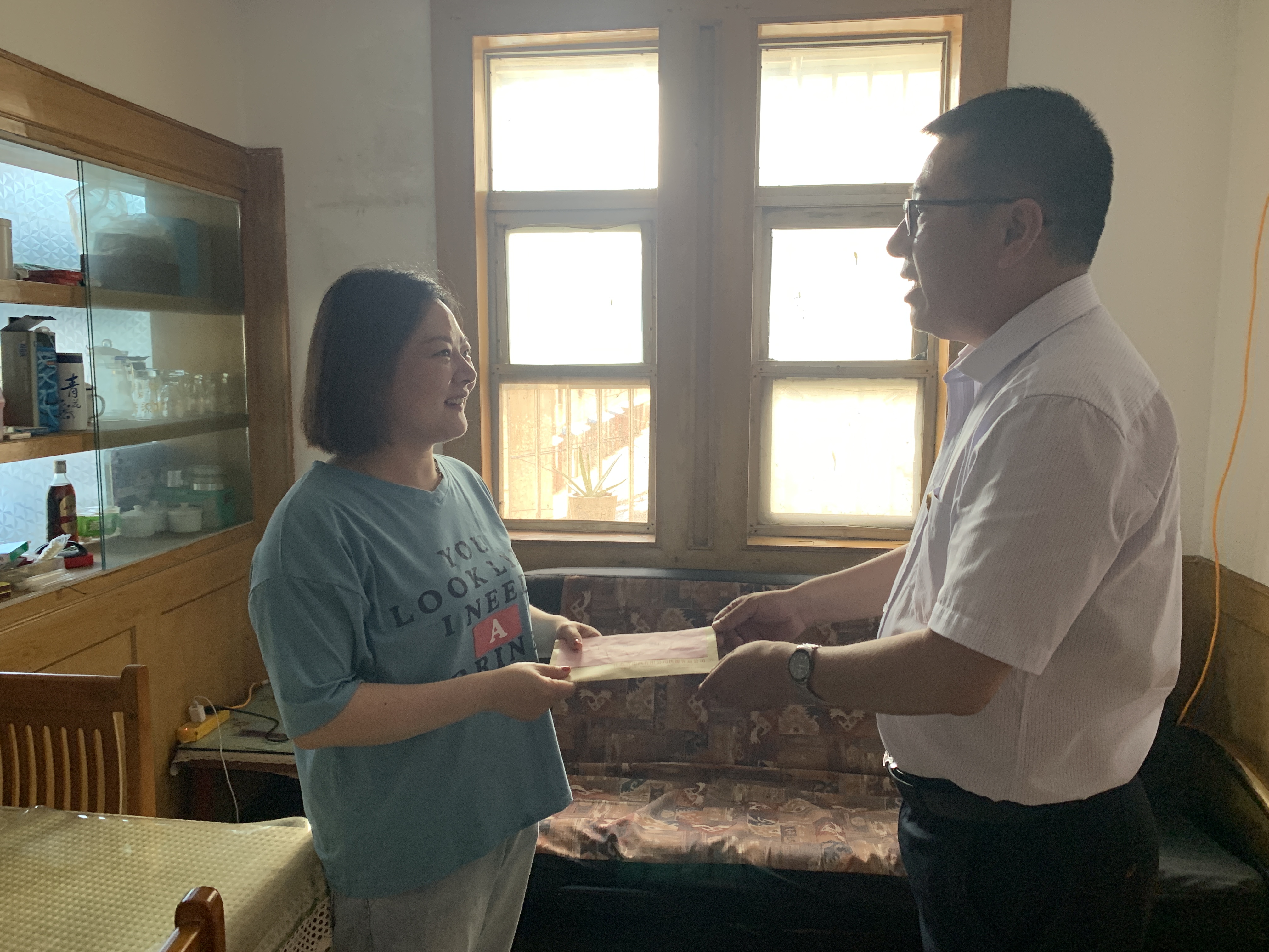 经理董红波关切地询问了沈益健妻子的诊疗康复情况,了解了他们一家人的生活、存在的困难及子女学业情况,勉励他们一定要树立“战胜病魔,恢复健康”的勇气和信心,积极乐观地面对生活,共同努力,克服困难,尽最大努力进行恢复治疗,争取早日康复,有任何困难可以及时与公司联系,公司一定会全力帮助解决。