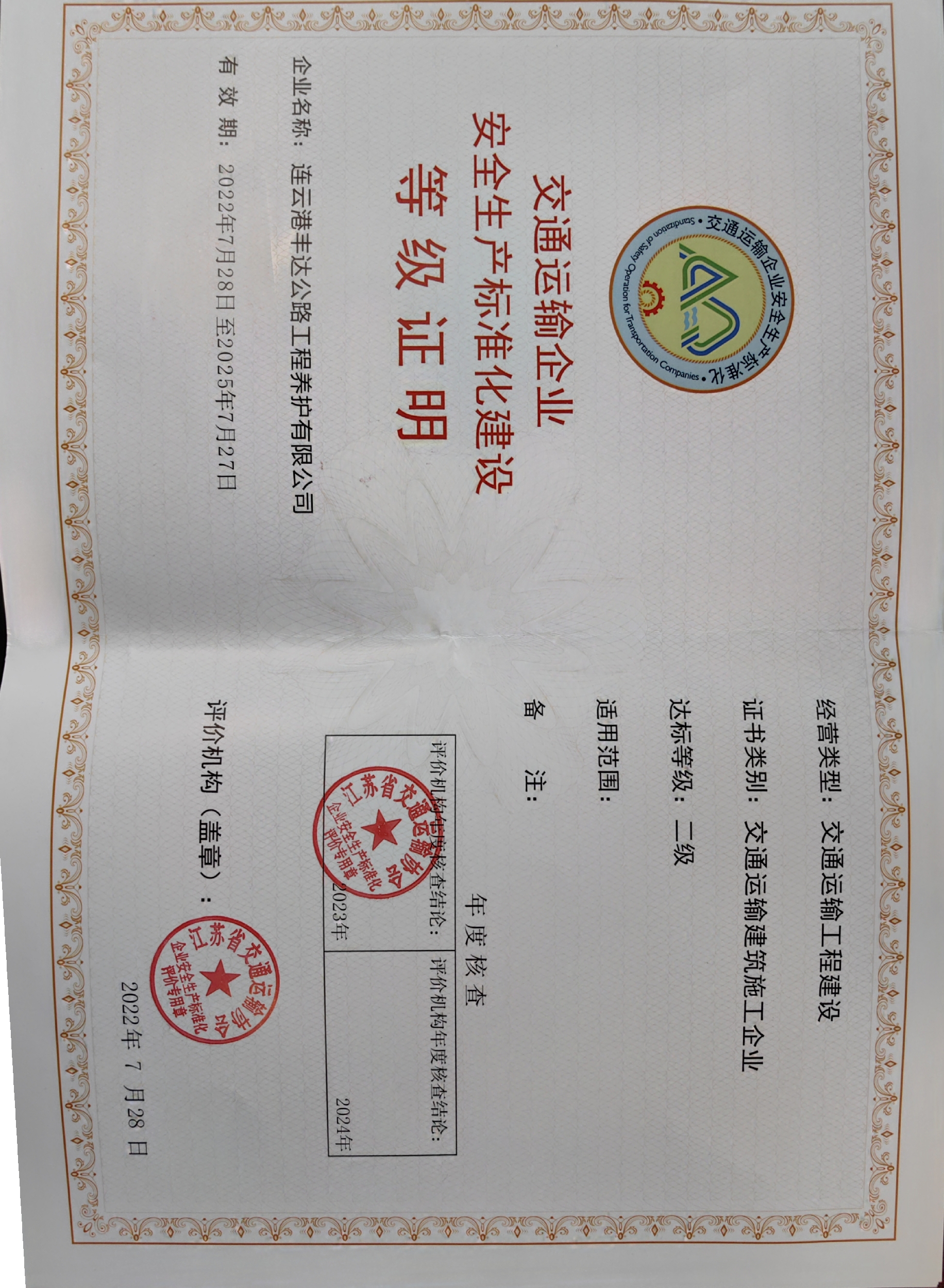 7月5日,丰达公司顺利完成交通运输二级安全生产标准化企业年度复审工作。
