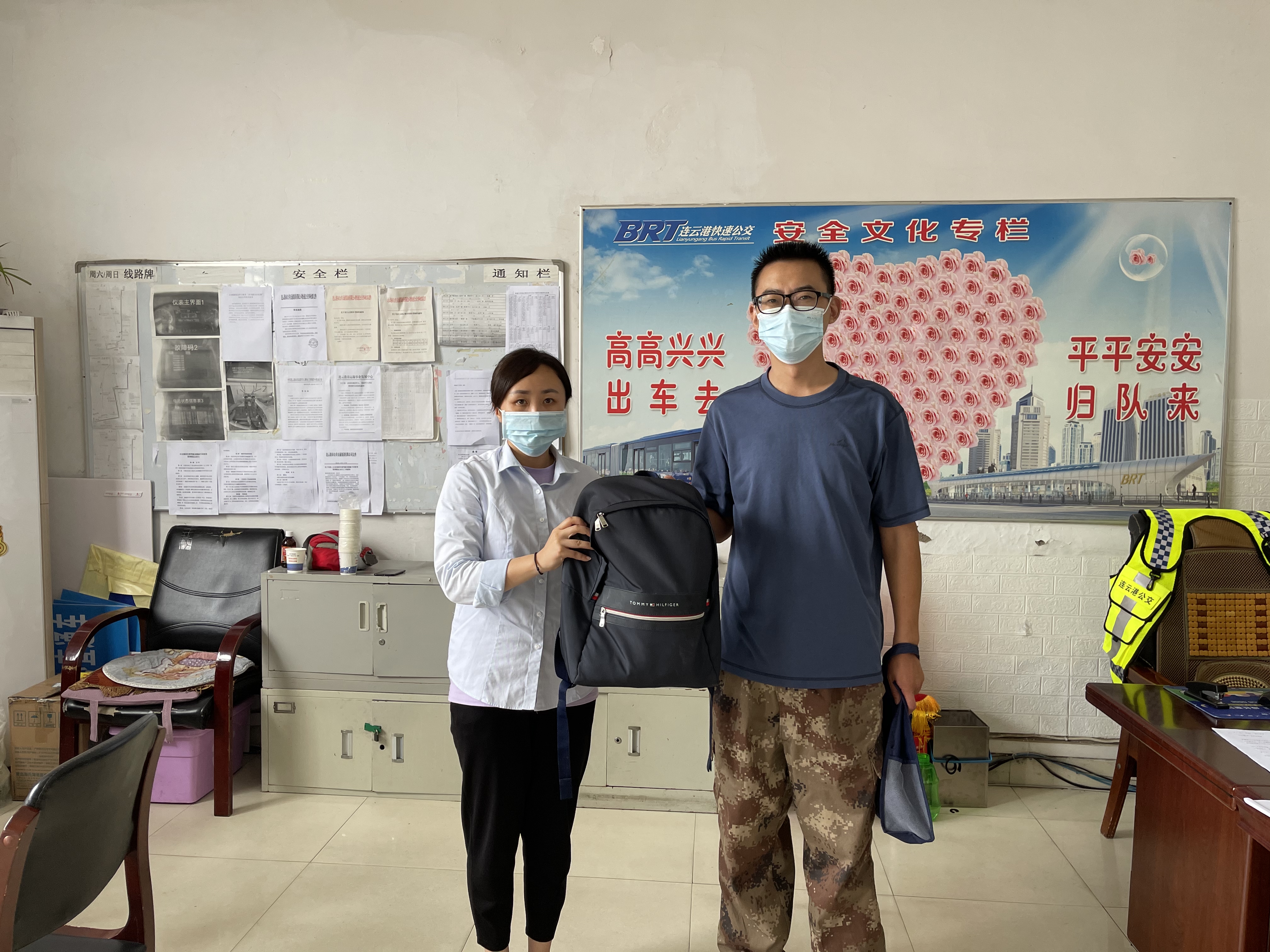 9月8日早,葛先生赶到西城公交总站调度室领取丢失的双肩包。拿着失而复得的包,葛先生非常地激动,连声向在场的调度员表示感谢并再三叮嘱,一定要传达他对拾金不昧的驾驶员陈红波同志的感谢之情。