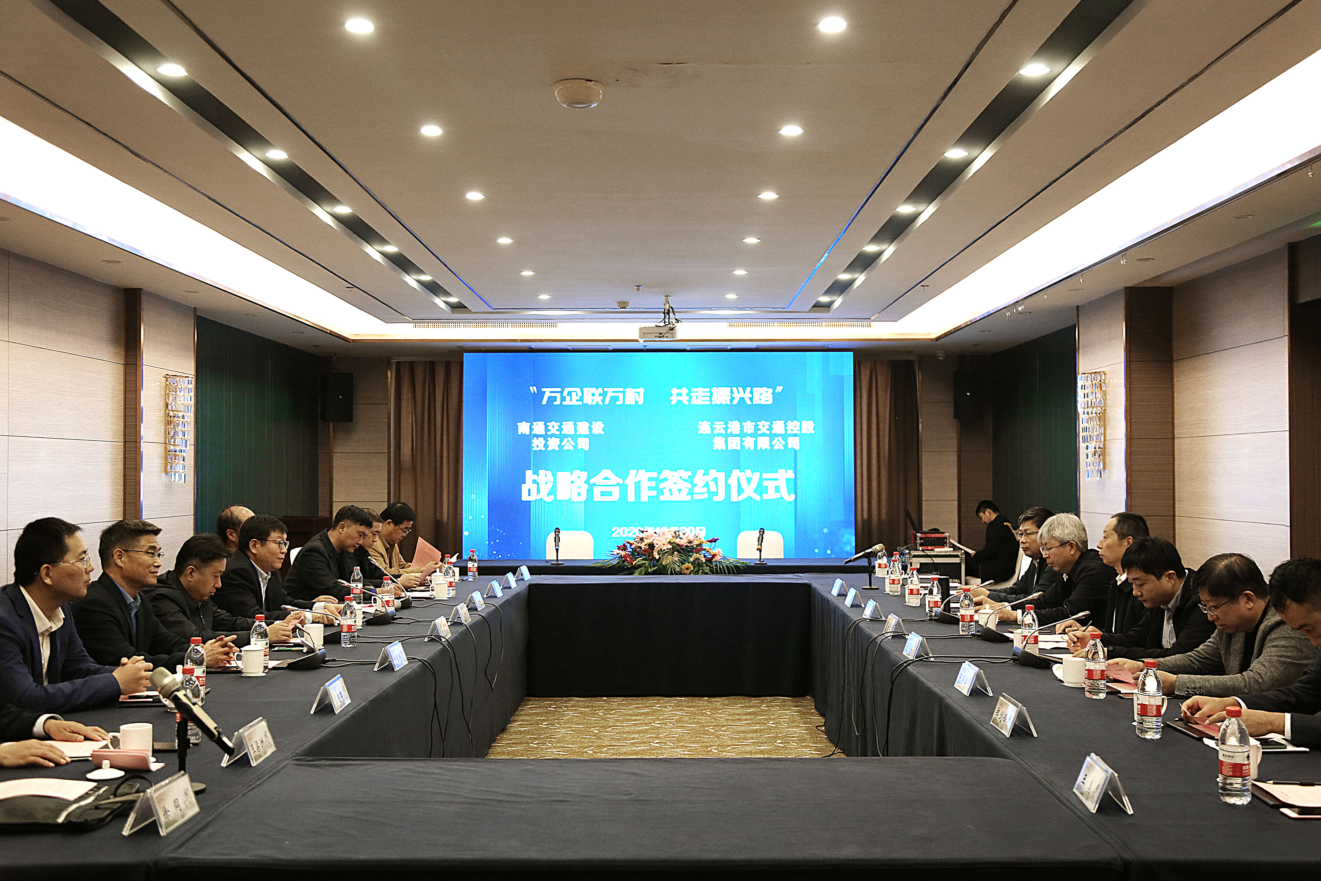 10月30日上午,连云港市交通控股世界杯app最新版下载,世界杯(中国)和南通交通建设投资公司签订“万企联万村 共走振兴路”合作协议、战略合作协议,连云港市国资委党委委员、副主任许峰;南通市国资委党委委员、主任助理季士军;连云港市交通控股世界杯app最新版下载,世界杯(中国)董事长、党委书记刘永能,总经理仲伟涛,副总经理孙超;南通交通建设投资公司总经理徐中,党总支副书记张燕滨等参加了签约仪式。