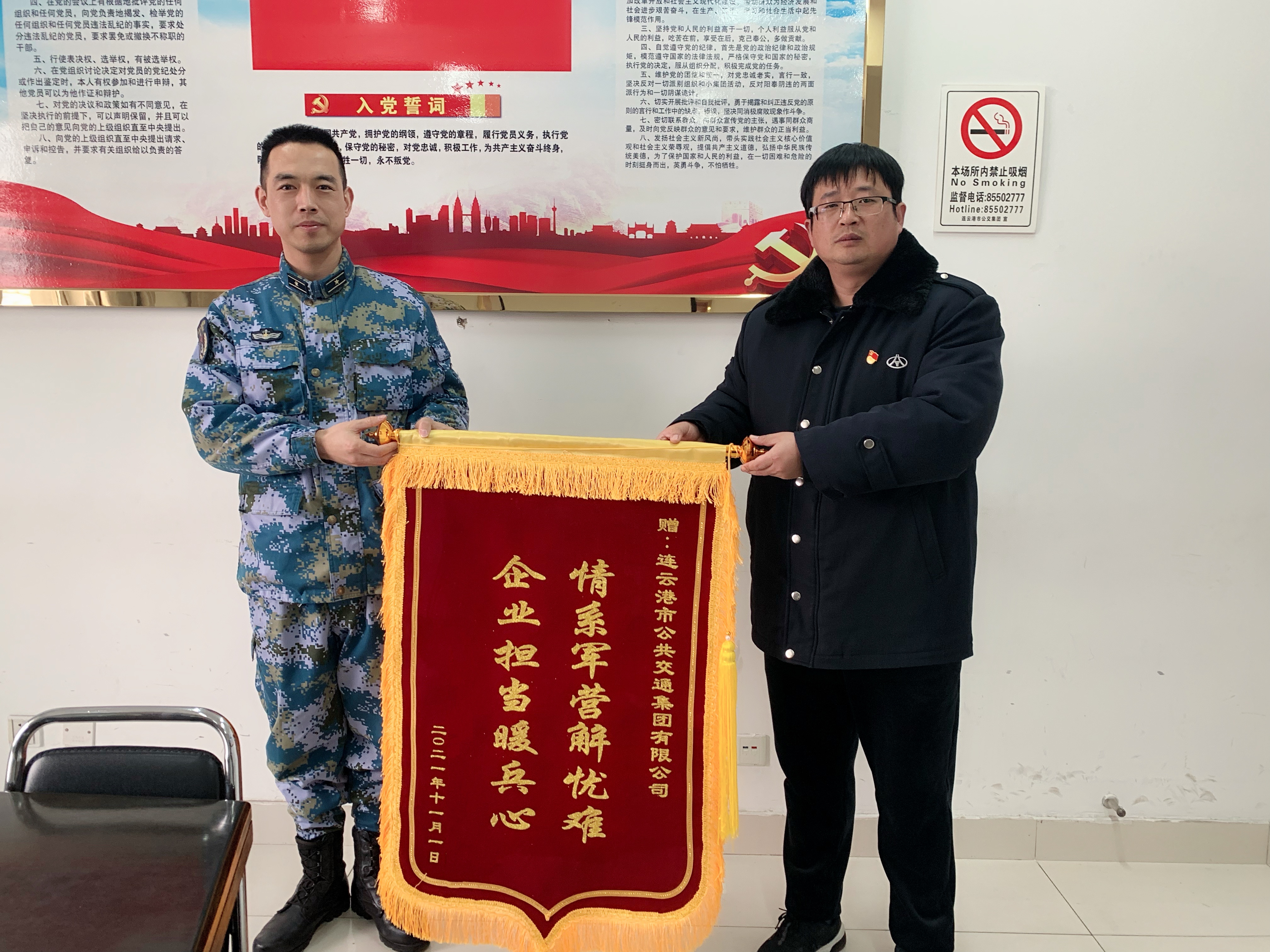 1月16日,解放军某部海军营区官兵代表特地赶到公交世界杯app最新版下载,世界杯(中国)公交事业二部,送来了一面写有“情系军营解忧难 企业担当暖兵心”的锦旗。